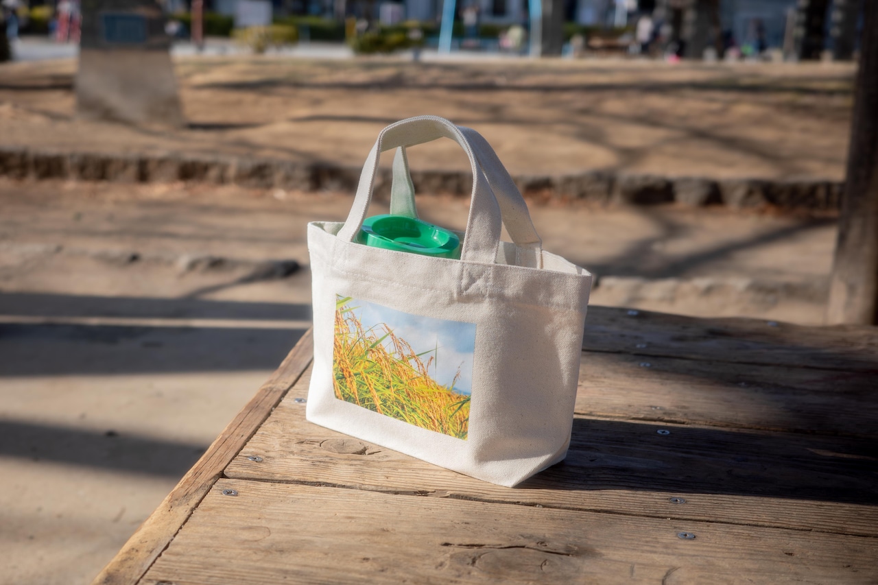 魚沼の豊かな大地で育った稲をプリントした、可愛らしいミニトートバッグです。地元の美しい風景を身近に感じられる一品で、さまざまなシーンで活躍します。散歩や買い物、ちょっとしたお出かけのお供にぴったりです。